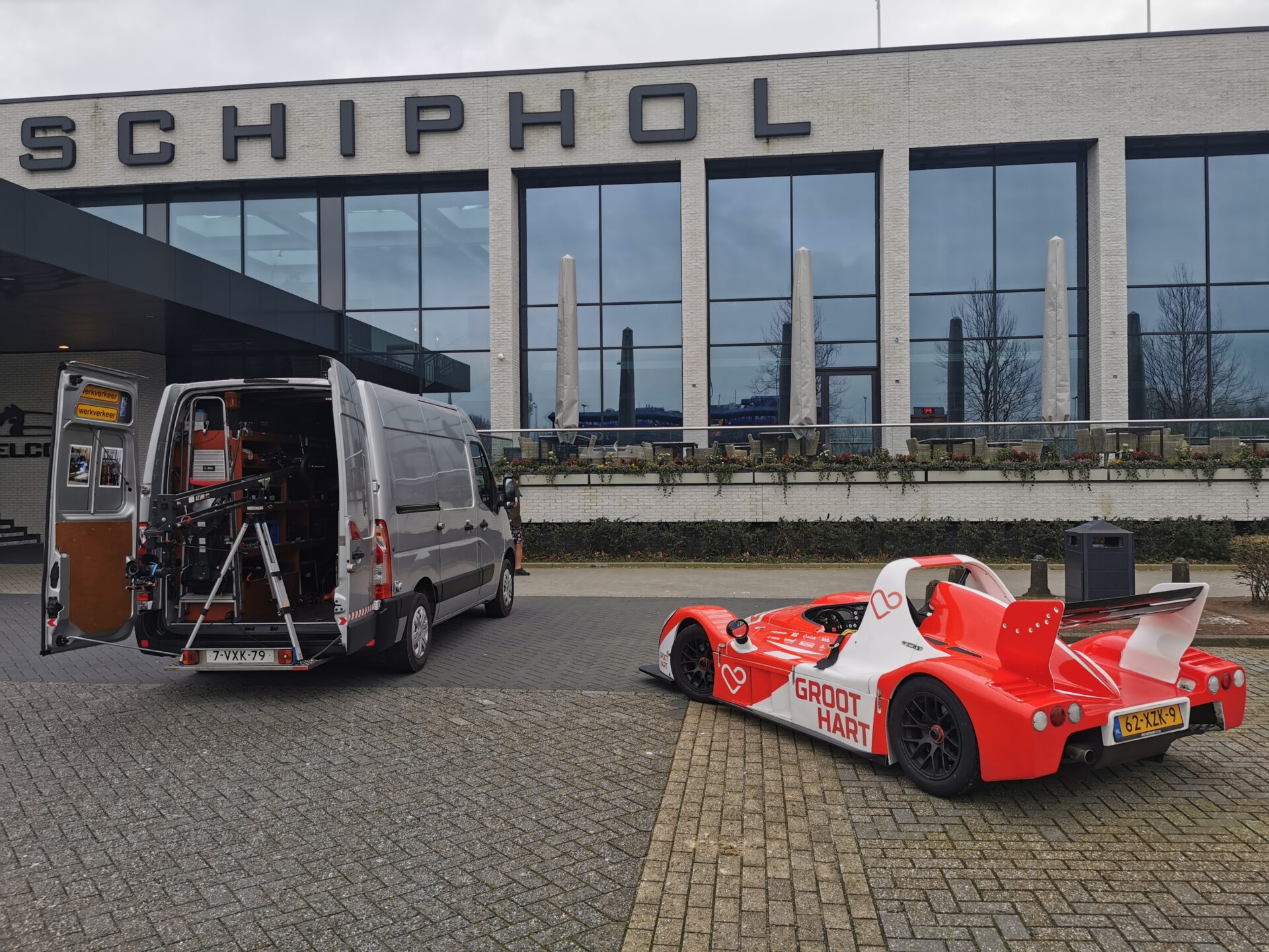 Voor welke lancering van het zakelijk magazine InfoRegio we ook opnames maken, het is altijd dikke pret. Voor iedere lancering (het uitbrengen van het actuele nummer) maken we een promotievideo met als doel zakelijk Haarlemmermeer te interesseren naar deze lancering te komen. Deze keer gaat het om de eerste uitgave van 2024, te lanceren op 20 maart as. De locatie is ook mooi: Hotel Van der Valk Schiphol in Hoofddorp dat ondanks de 700 (!) beschikbare kamers een warme en persoonlijke sfeer uitstraalt; dit grootste hotel van Nederland is de locatie van menig feestje uit de omgeving. De promo die we ieder kwartaal voor InfoRegio maken refereert natuurlijk aan het actuele thema en dit keer is dat “Mobiliteit & Transport”. Een dik nummer wordt het, niet in de laatste plaats doordat deze InfoRegio ook dit keer veel lokaal nieuws en redactionele artikelen bevat. Voor de promo, die altijd de nodige humor bevat, mochten we gebruik maken van een heuse race-auto. Straatlegaal uiteraard. We hebben deze speciale auto gefilmd met onze speciale camerakraan, vanuit de filmbus. De camera komt daarmee van zo’n 5 cm boven het wegdek tot 2,5 meter hoger. De race-auto bevond zich soms op 10 cm afstand van de cameralens. Maar “Stig” is dan ook een geoefend rijder.
