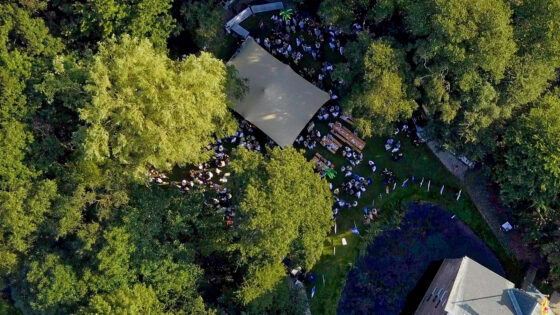 ONZE UITVOERING Natuurlijk kunnen we dat maar ik zou ook vanaf de grond filmen. De prachtige tuin van ’t Huys Dever is omgeven door bomen en je zult vanuit de lucht hooguit sfeerplaatjes kunnen schieten. Mijn advies is dus: vanaf de grond filmen en bovendien mooie sfeeropnames maken met de drone. En zo geschiedde. Het drukbezochte evenement viel qua weer in de prijzen. Een heerlijke temperatuur en een vrolijk zonnetje. Het was een mooie en drukbezochte bijeenkomst.